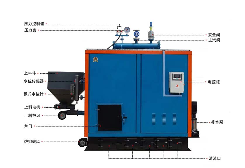立式生物質(zhì)顆粒蒸汽發(fā)生器采用多管多回程設(shè)計(jì),燃燒完**率高,具有大容量半氣化燃燒室,自動(dòng)配風(fēng)燃燒控制,配置煙氣回收器,綜合使用燃料燃燒效率可達(dá)93%以上,進(jìn)料系統(tǒng)采用**的螺桿旋轉(zhuǎn)驅(qū)動(dòng)進(jìn)料裝置,進(jìn)料精準(zhǔn)可調(diào)速,只需一次性將儲料倉加滿,自動(dòng)調(diào)節(jié)上料無需專人管理省時(shí)省力,不需要年檢,不需要專業(yè)的司爐工人員。**配置具有壓力、缺水、**閥等多重保護(hù)裝置,實(shí)時(shí)顯示運(yùn)行狀態(tài),確保鍋爐運(yùn)行穩(wěn)定、****。